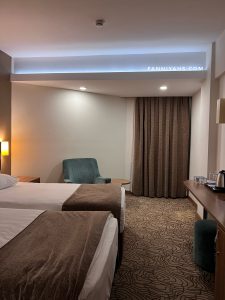 Malam ini, kami menginap di Richmond Pamukkale Thermal Resort. Lokasinya tidak jauh dari Cotton Castle. Hotelnya bagus banget dan ada kolam renang air panasnya. Tapi tidak sempat mencoba berenang karena sampai hotel sudah malam dan pagi-pagi checkout melanjutkan perjalanan ke Istanbul. Kami dinner dan lunch di hotel ini, pilihannya banyak, ada nasi, pizza, salad hingga berbagai macam jenis baklava.